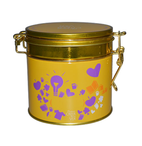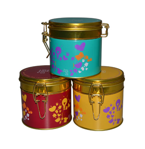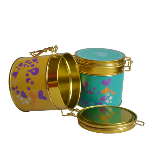 經(jīng)典帶鎖扣圓形通用鐵罐 翻蓋馬口鐵盒定制