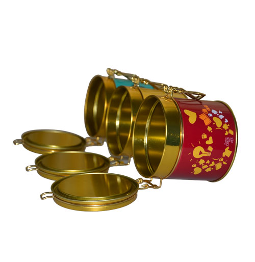 這款高檔鐵罐鐵料采用優(yōu)質(zhì)的寶鋼馬口鐵,厚度達(dá)到23絲(0.23mm);罐蓋采用雙層材料加厚制作,罐底采用封底結(jié)構(gòu)。鐵罐采用鎖扣翻蓋形式,方便實(shí)用,且在密封性能上突出。此款鐵罐可適用于茶葉、食品、促銷禮品、化妝品等行業(yè)。