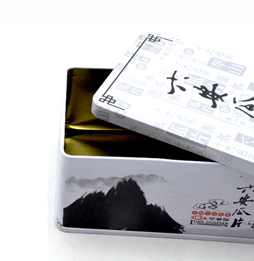 簡(jiǎn)述:這款六安瓜片茶葉鐵盒方方正正,采用涂白四色印刷,所以顏色比較飽滿、純凈。上面的字體采用的是凸體印刷,并且側(cè)面的水墨畫的圖案設(shè)計(jì)非常的適合中國(guó)風(fēng)的風(fēng)格,大氣簡(jiǎn)約又不失優(yōu)雅。