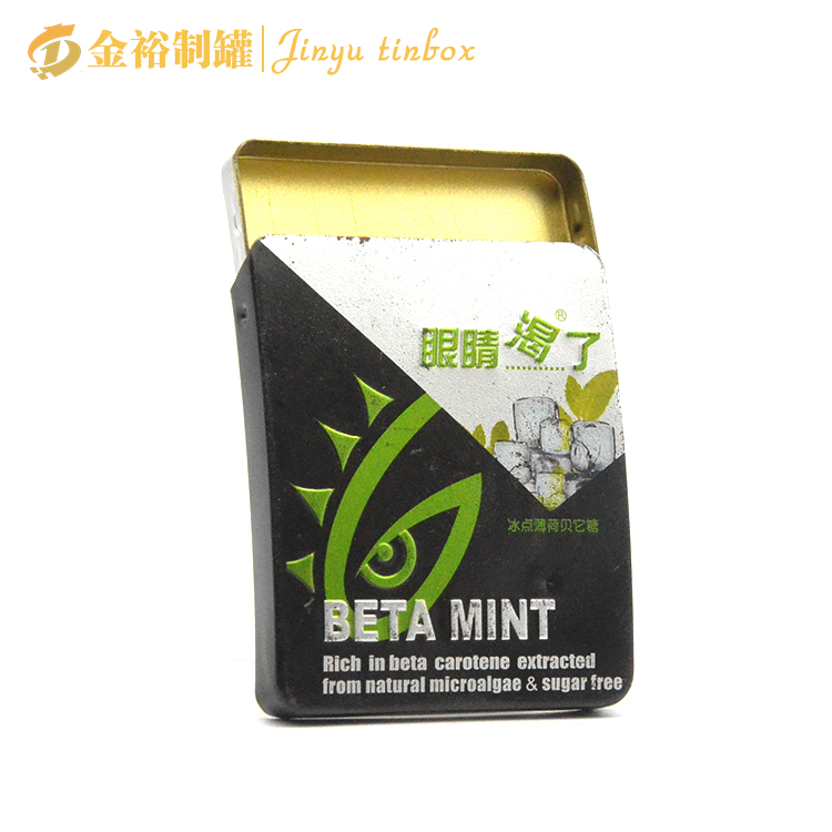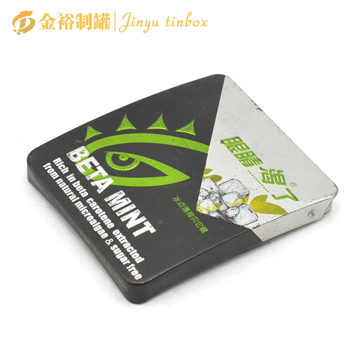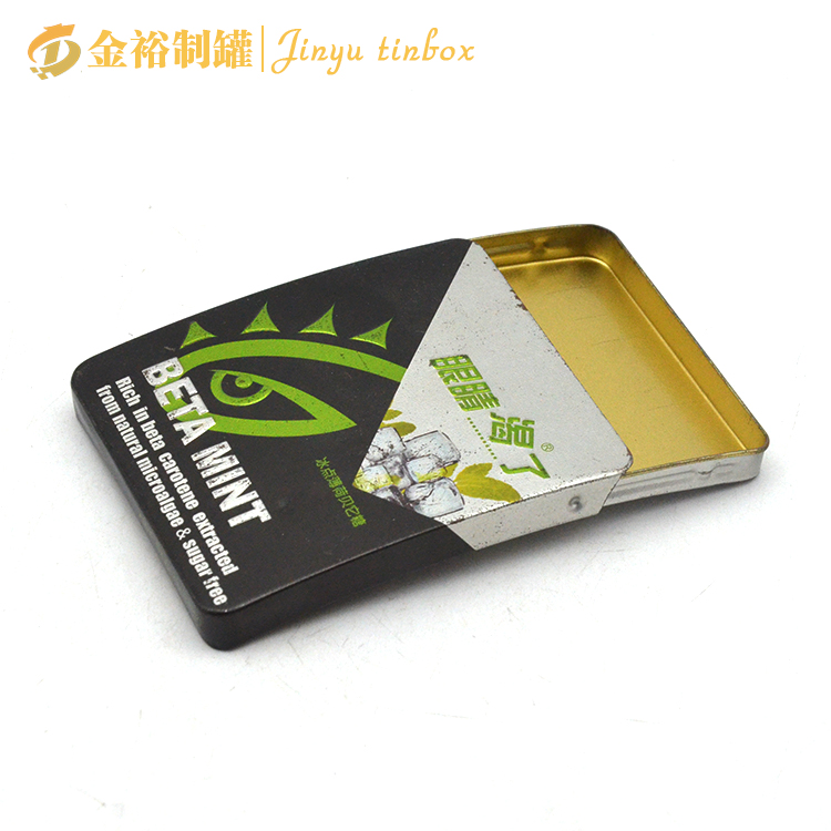 【簡介】推拉鐵盒,裝口含片的鐵盒包裝,相比于一般的口含片鐵盒,整個盒型采用弧度設(shè)計,四色印刷,內(nèi)涂金油,打破常規(guī)思想,給人一種不一樣的視覺感受。