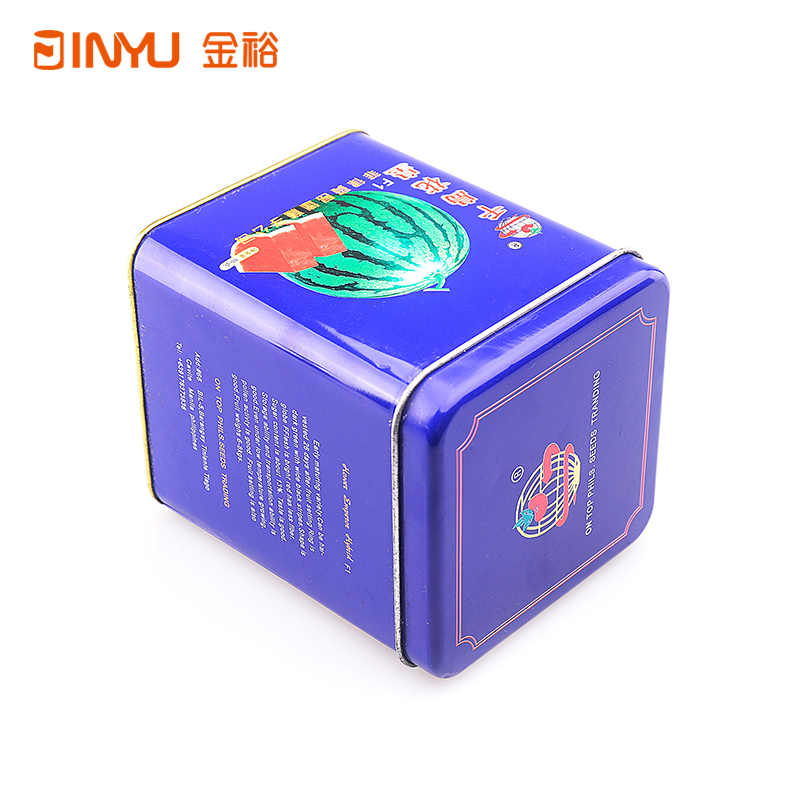 【產(chǎn)品簡介】該款方形小鐵盒是用來裝西瓜種子的,采用我司現(xiàn)有模具生產(chǎn),該小鐵盒除了用作種子鐵盒以外,還用過茶葉、巧克力等產(chǎn)品包裝,也做過出口,老外也是拿來做種子鐵盒包裝的。小鐵盒,大用途。