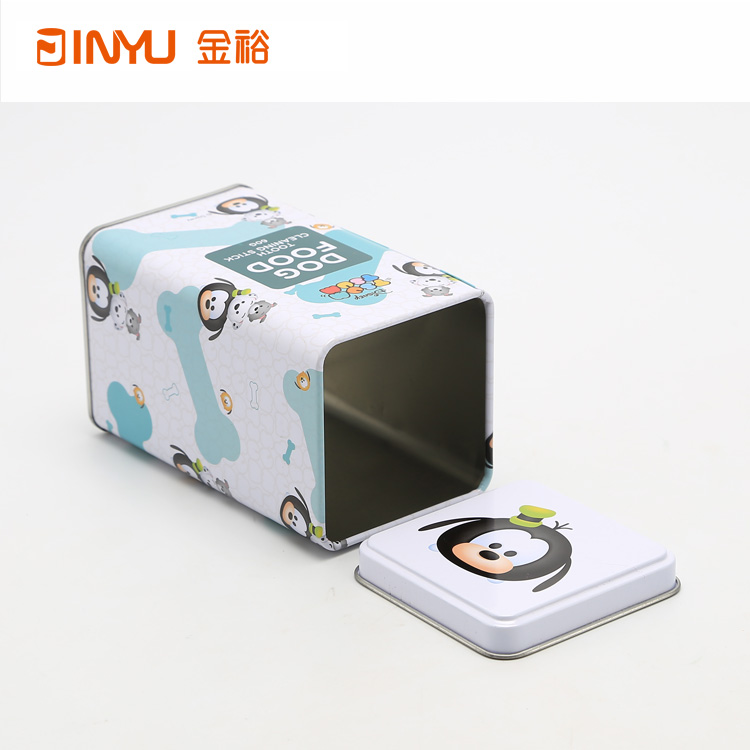 【產(chǎn)品簡(jiǎn)介】這款長(zhǎng)方形食品鐵罐子是我公司專門為寵物口糧設(shè)計(jì)的,采用四色印刷工藝配上動(dòng)物卡通圖案,使得這款鐵罐十分符合寵物口糧包裝的特點(diǎn),這款鐵罐是我公司現(xiàn)有模具生產(chǎn),此小鐵罐還可以用作茶葉、糖果等產(chǎn)品包裝,可定制不同工藝、色彩、圖案、尺寸等等。